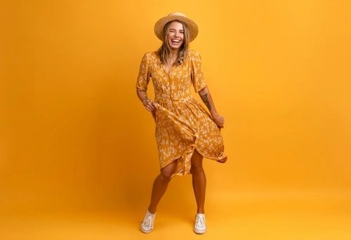 • Casual Day Out: Lightweight cotton or linen midi/mini dress with sneakers or loafers. Great for shopping or city strolls.